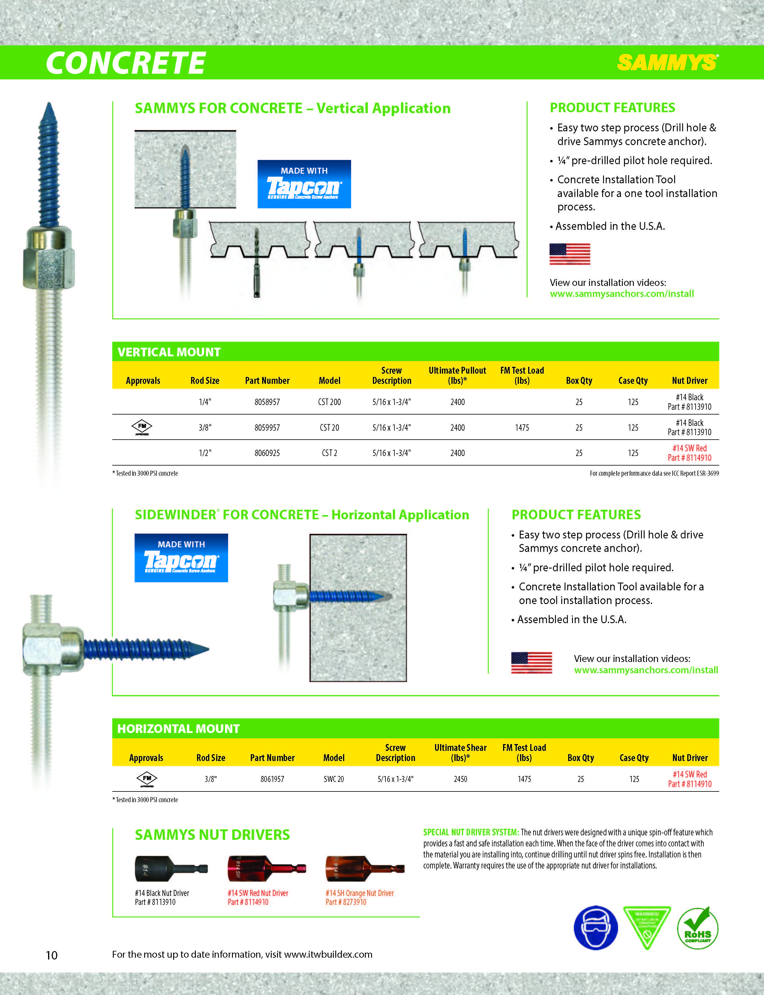 SWC 20 HORIZONTAL 1-3/4" SDWNDR FOR CONCRETE 3/8